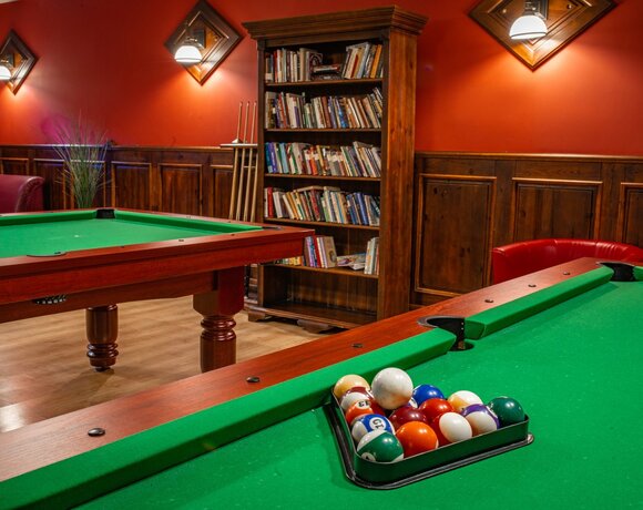 Sala wyposażona jest w stoły do bilarda, tenisa stołowego, piłkarzyki, TV oraz biblioteczkę z ciekawa lekturą.